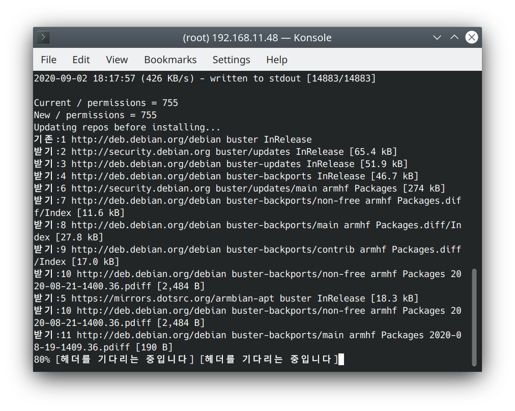 먼저, Armbian 초기 설정 시 설정했던 root 비밀번호를 이용해 root로 Odroid에 접속합니다.