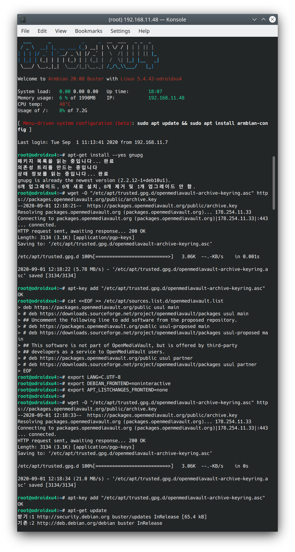 Odroid에 Armbian이 준비되었으면, 이제 OMV 5를 설치할 수 있습니다.